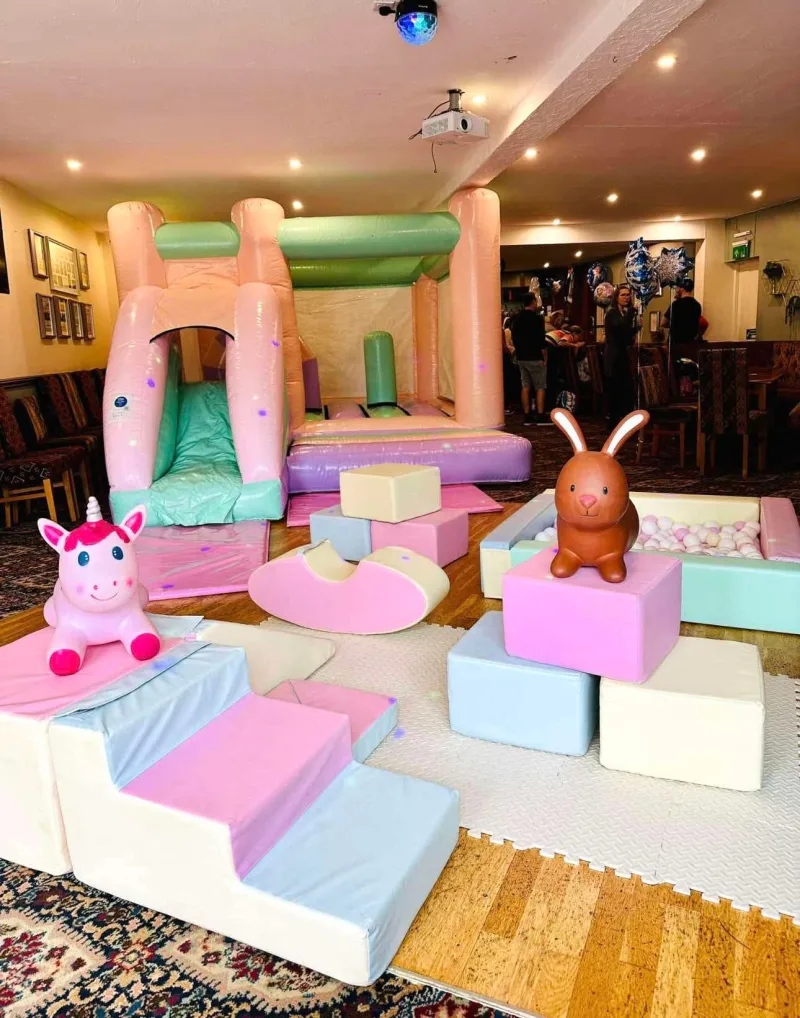 This hire with the equipment above is for £105! However, if you would like to personalise it from £130 and add a pastel bouncy castle, please contact us!